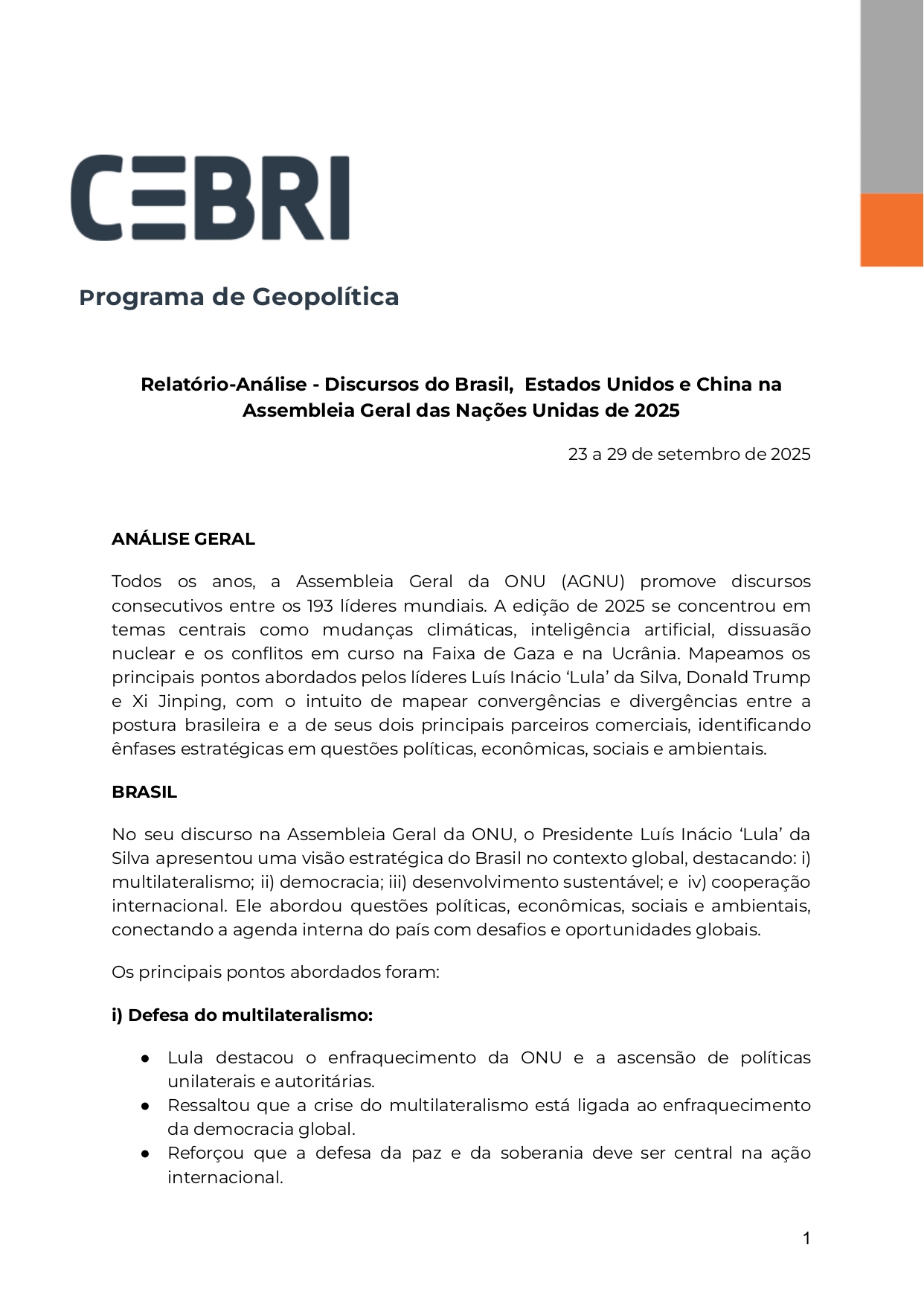 O Centro Brasileiro de Relações Internacionais (CEBRI) é um think tank independente, que contribui para a construção da agenda internacional do Brasil. Há mais de vinte anos, a instituição se dedica à promoção do debate plural e propositivo sobre o cenário internacional e a política externa brasileira.