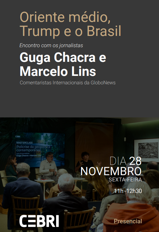 As crises políticas, econômicas, sociais e ambientais conectam-se umas às outras criando uma policrise, que afeta de forma distinta países e regiões, e exigem uma compreensão cada vez mais dinâmica das relações internacionais. Para debater o cenário internacional atual e seus efeitos sobre o Brasil, o Centro Brasileiro de Relações Internacionais promove um encontro entre os jornalistas e comentaristas da GloboNews Guga Chacra e Marcelo Lins, dia 28 de novembro, na cidade de São Paulo. O encontro contará com a abertura institucional do Embaixador Rubens Ricupero, Conselheiro Emérito do CEBRI.