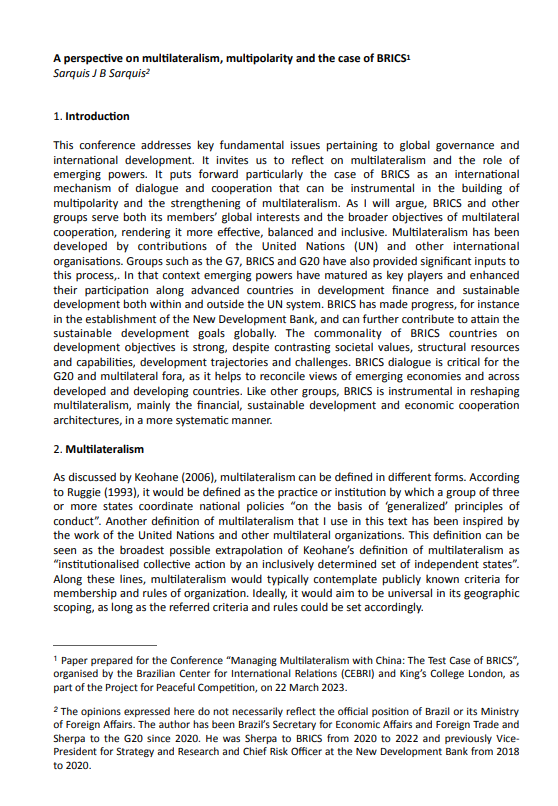 Esta será a 11ª de uma série de conferências organizadas ao redor do mundo no âmbito do Project for Peaceful Competition. Coordenado pelo King’s College London, o projeto almeja refletir sobre os principais desafios à humanidade a partir dos quais o Ocidente precisará colaborar com o Oriente e em particular com China. A presente conferência analisará as contribuições dos BRICS para reforçar a colaboração com a China e enfrentar desafios geopolíticos de primeira ordem.