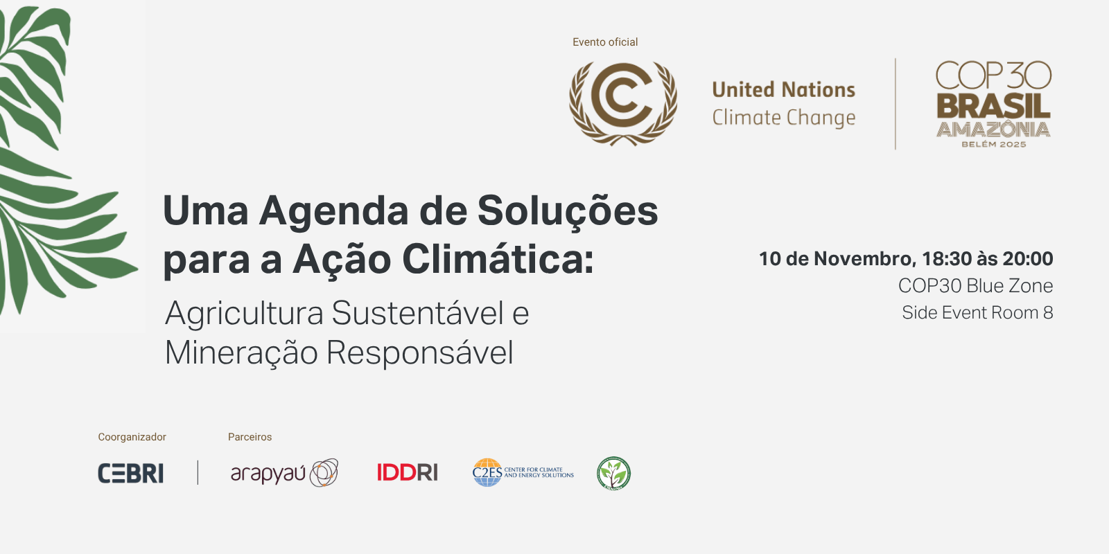 A implementação do Acordo de Paris exige novas ideias para as transições energéticas e do uso da terra. Com esse propósito, este evento explorará como ampliar a agricultura e a mineração sustentáveis por meio de práticas regenerativas, governança inclusiva, cooperação internacional reforçada e novas tecnologias.