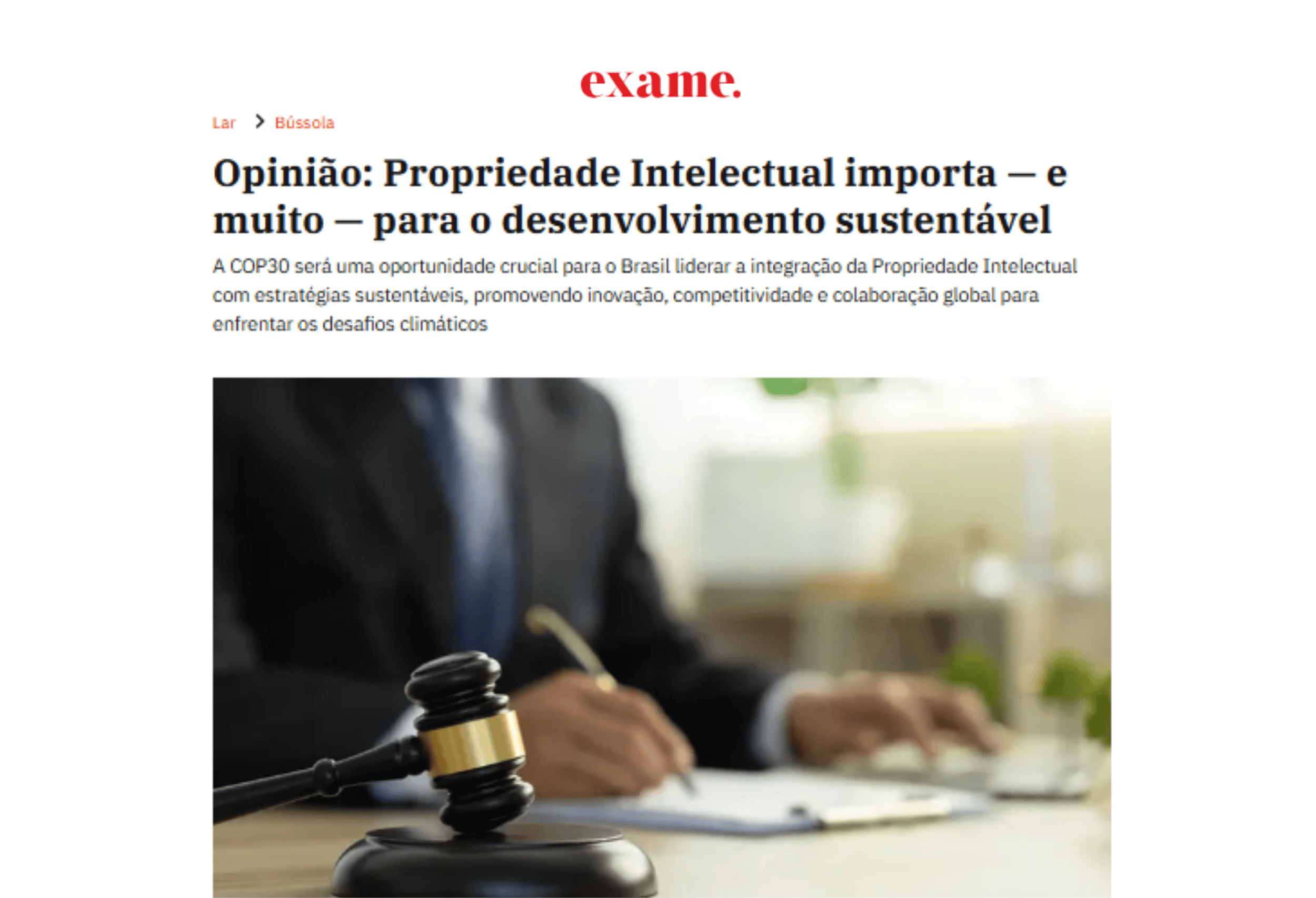 No texto, as autoras destacam a COP30, que será realizada em Belém do Pará, em novembro de 2025, como uma oportunidade decisiva para o Brasil liderar a integração entre Propriedade Intelectual e sustentabilidade, promovendo inovação, competitividade e cooperação global frente aos desafios climáticos.