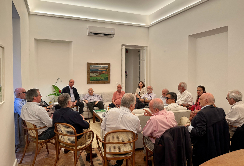 Estiveram presentes (da esquerda para a direita): Embaixador Antônio Souza e Silva, Conselheiro Consultivo de Relações Institucionais e Governamentais, Manoel Correa do Lago, Conselheiro Consultivo Acadêmico, Armando Mariante, Conselheiro do CEBRI, Francisco Mussnich, Conselheiro, Julia Dias Leite, Diretora Presidente, Clarissa Lins, Conselheira Consultiva Internacional, José Pio Borges, Presidente do Conselho Curador, Luiz Ildefonso Simões Lopes, Vice-Presidente, Izabella Teixeira, Conselheira Consultiva Internacional, Luiz Eduardo Osorio, Conselheiro, Roberto Jaguaribe, Conselheiro Consultivo Internacional, Aspásia Camargo, Senior Fellow, Leslie Bethell, Conselheiro Consultivo Internacional, Henrique Rzezinski, Conselheiro, Gelson Fonseca, Fundador, Philip Yang, Conselheiro Consultivo Internacional, Maria Netto, Senior Fellow, e André Lara Resende, Conselheiro.