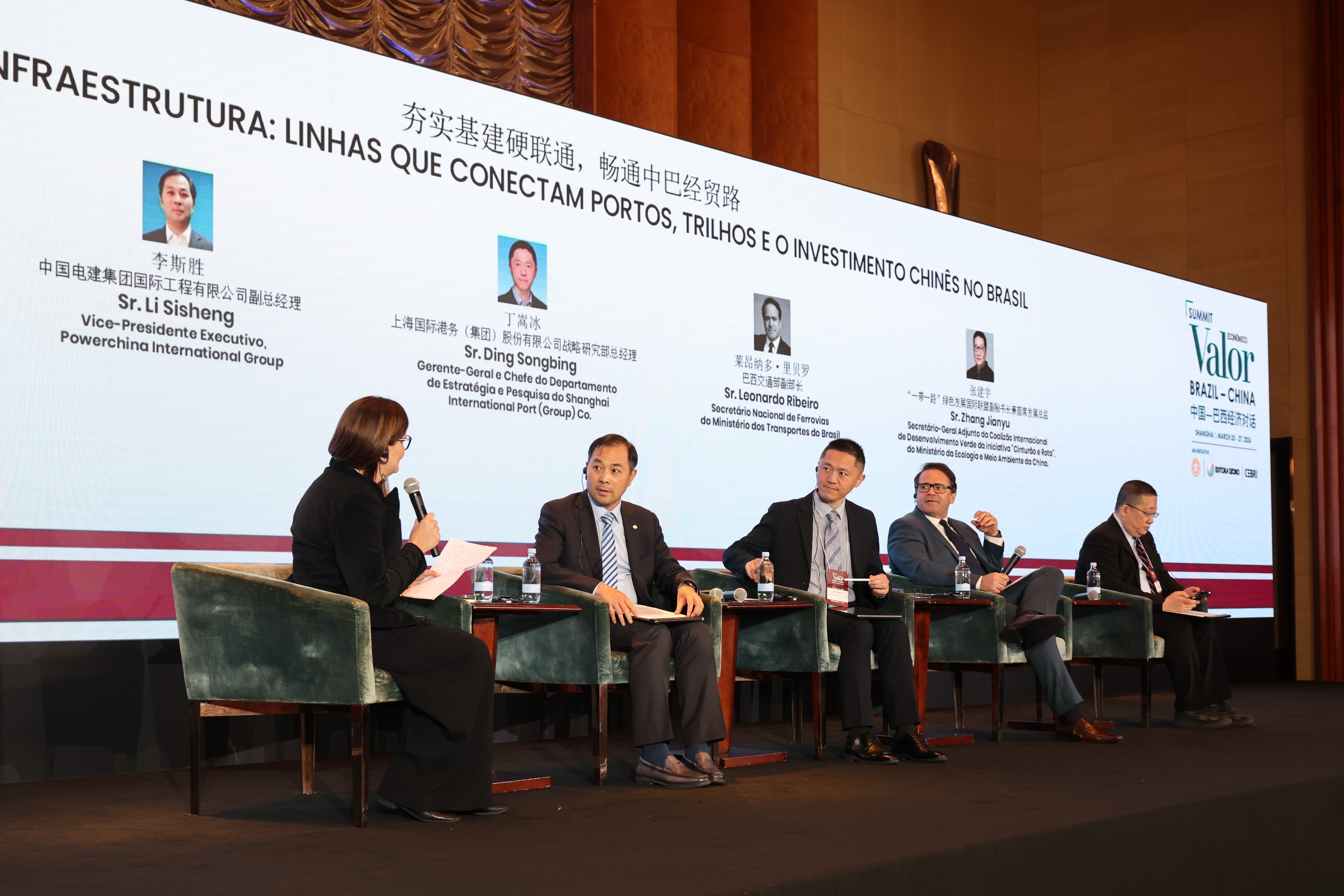 Reunindo representantes do setor público e privado para debater os desafios e oportunidades da agenda, o painel contou com a participação Li Sisheng, Vice-Presidente Executivo da Powerchina International; Ding Songbing, Gerente-Geral e Chefe do Departamento de Estratégia e Pesquisa do Shanghai International Port (Group) Co.; Leonardo Ribeiro, Secretário Nacional de Ferrovias do Ministério dos Transportes; e Zhang Jianyu, Secretário-Geral Adjunto da Coalizão Internacional de Desenvolvimento Verde da iniciativa "Cinturão e Rota", do Ministério da Ecologia e Meio Ambiente da China.
