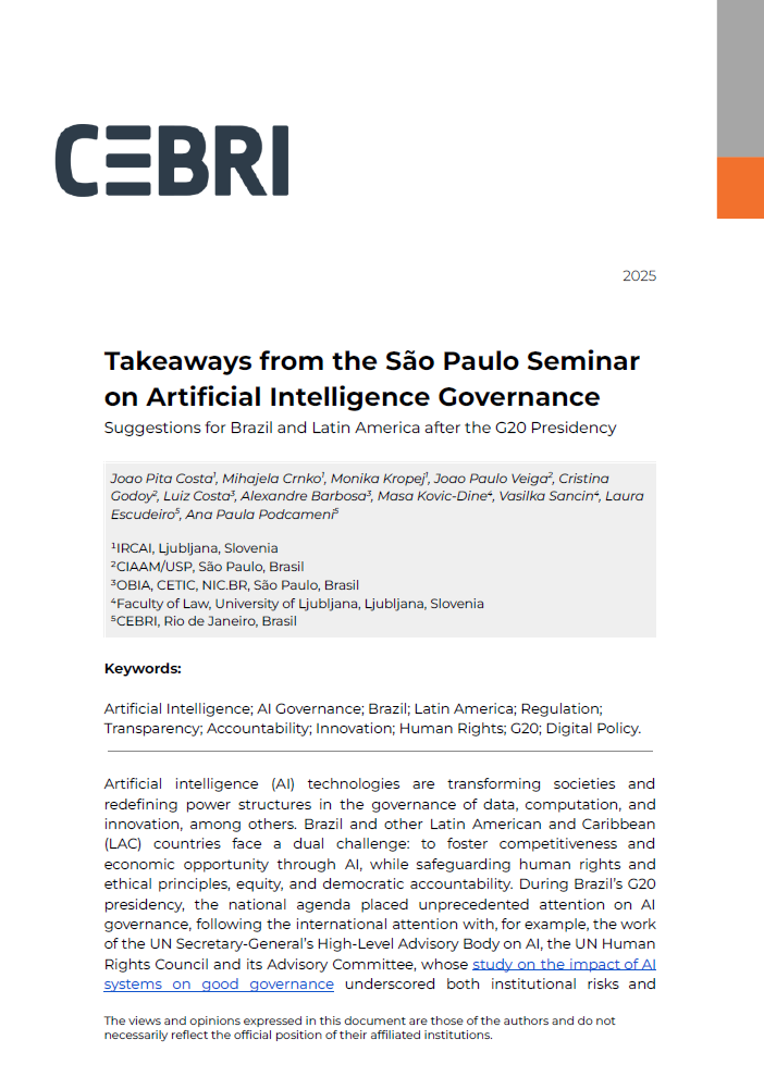 The seminar examines how Brazil can develop a cohesive and future-oriented framework for AI governance. Discussions will address key issues such as institutional coordination, transparency, and risk management, as well as strategies for incorporating principles like safety, explainability, and data protection into AI systems. By drawing on international models and multilateral experiences, the event seeks to provide insights that can inform and enhance Brazil’s national approach to AI Governance.